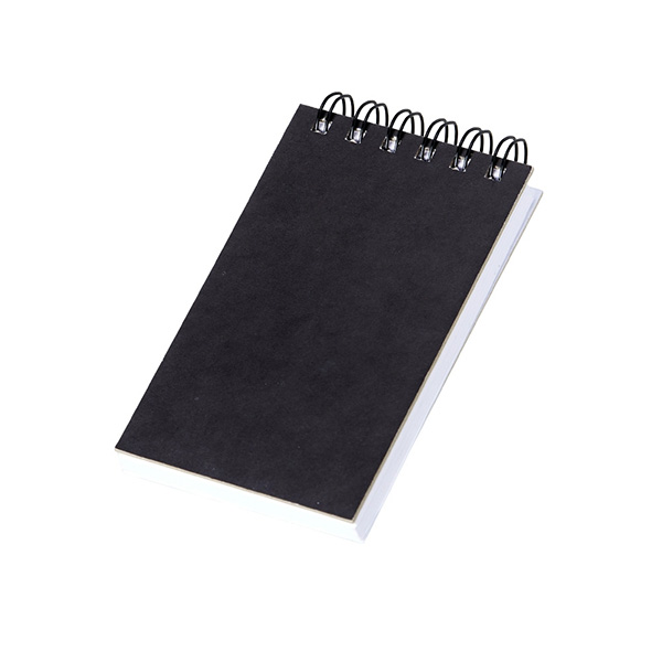 Bloco de anotações capa dura em kraft com wire-o. Contém aproximadamente 100 folhas sem pauta na cor branca. Medidas: 85x152x12 mm.
