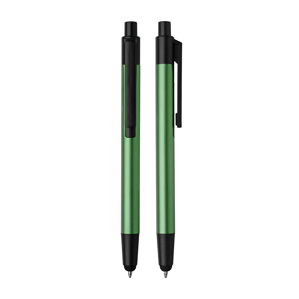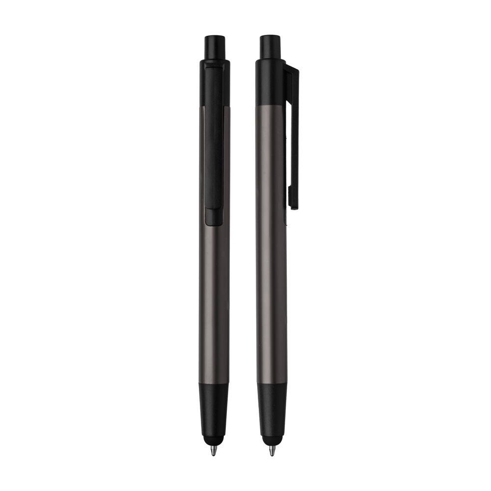 Esferográfica em alumínio com mecanismo twist. Ponteira touch em silicone. Corpo laqueado com revestimento matt. Recarga em metal tipo-Cross.