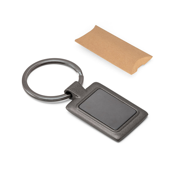 Chaveiro metálico de couro sintético especial e argola. Incluso caixa. Medidas: 22x65x8 mm.