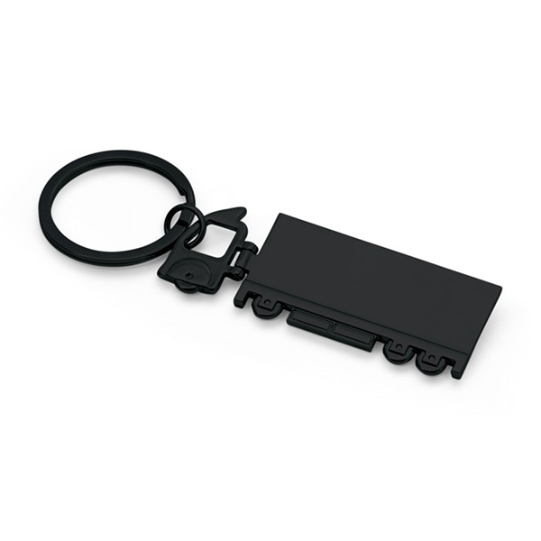 Chaveiro de metal brilhante ou fosco no formato de caminhão.