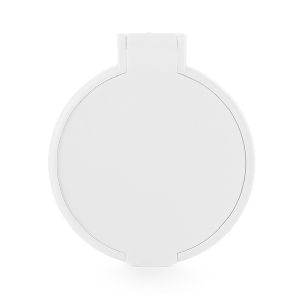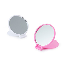 Espelho plástico de bolso redondo sem aumento. Medidas: 70x56x5 mm.