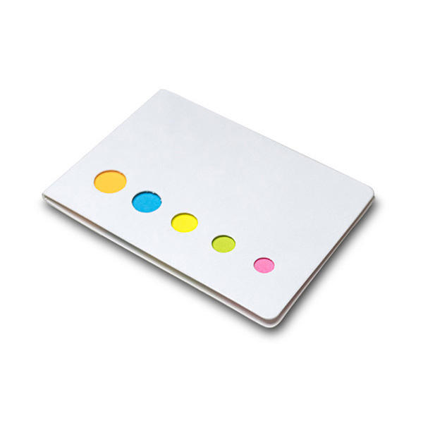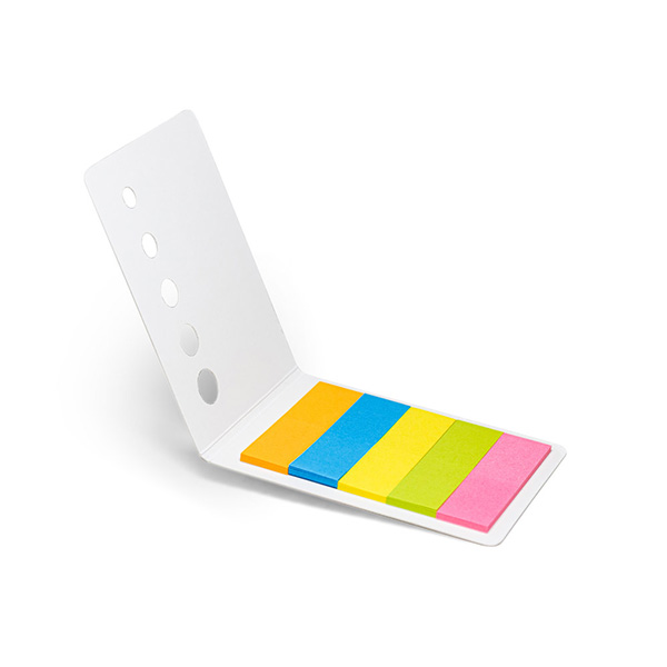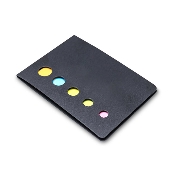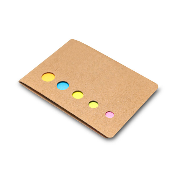 Jogo com 5 blocos adesivados com 20 folhas cada e capa em cartão. Este produto é feito de material proveniente de gestão florestal sustentável. Medidas: 80x60x3 mm.