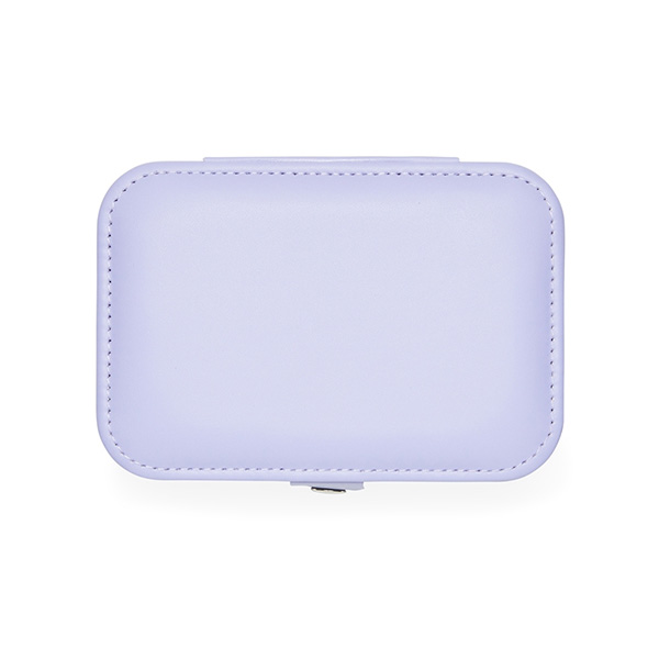 Porta-joias em couro sintético com espelho interno de textura macia e fechamento com zíper. Possui 3 ganchos, 5 divisórias removíveis sendo uma para anéis e alianças.