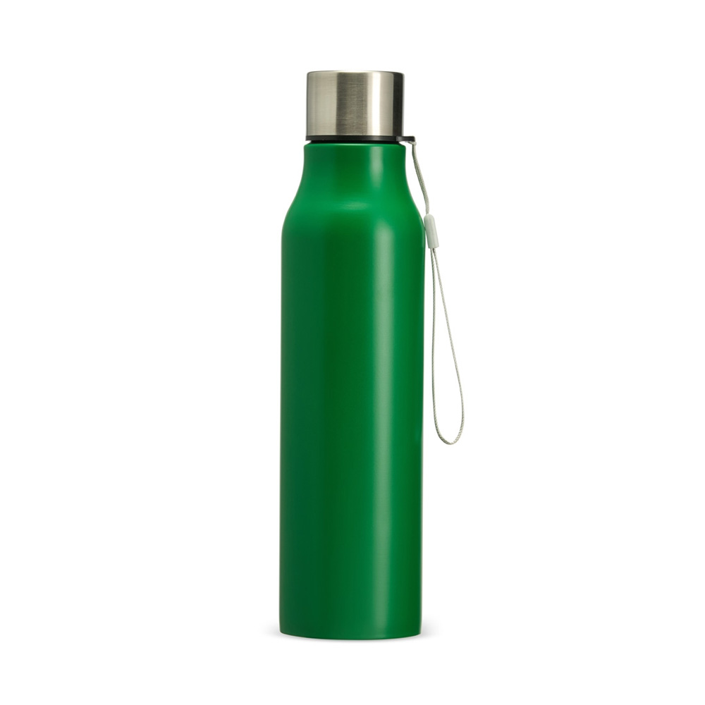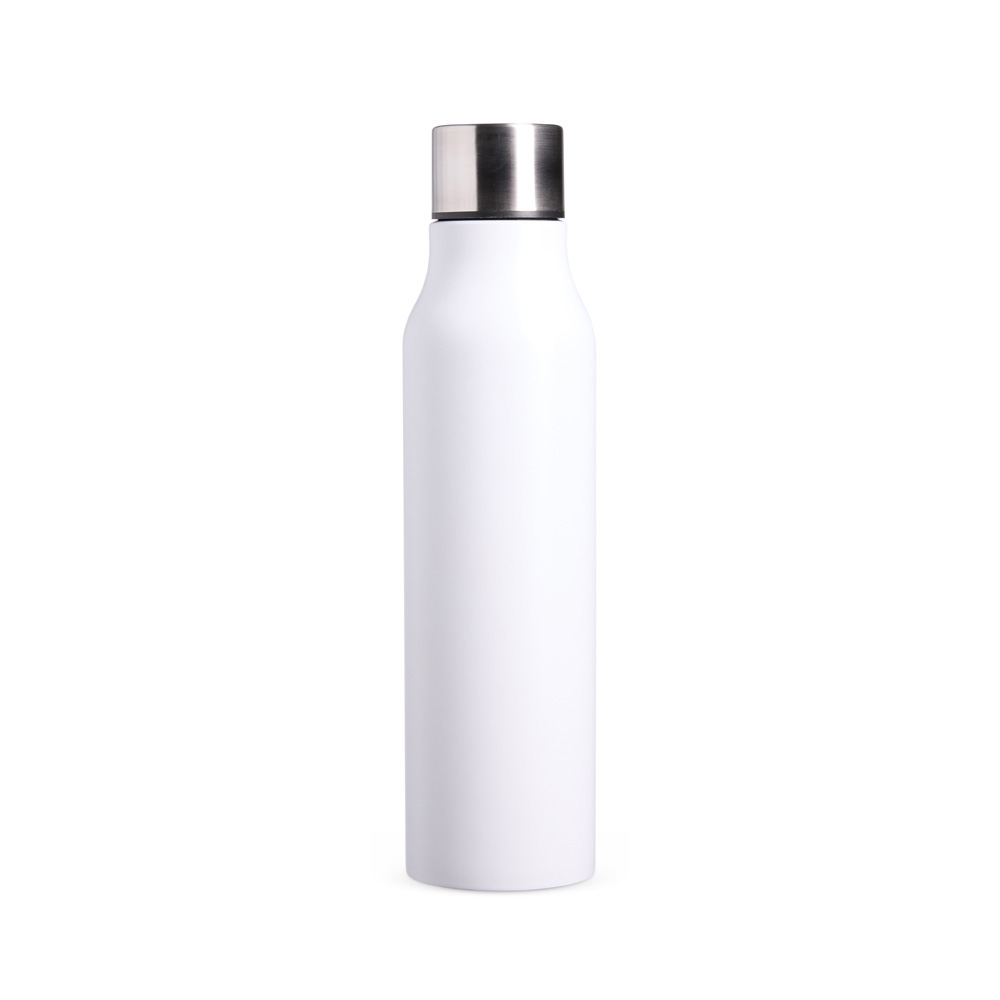 Garrafa de 650ml em inox com tampa rosqueável e pintura brilhante. Medidas: ø73x234 mm.