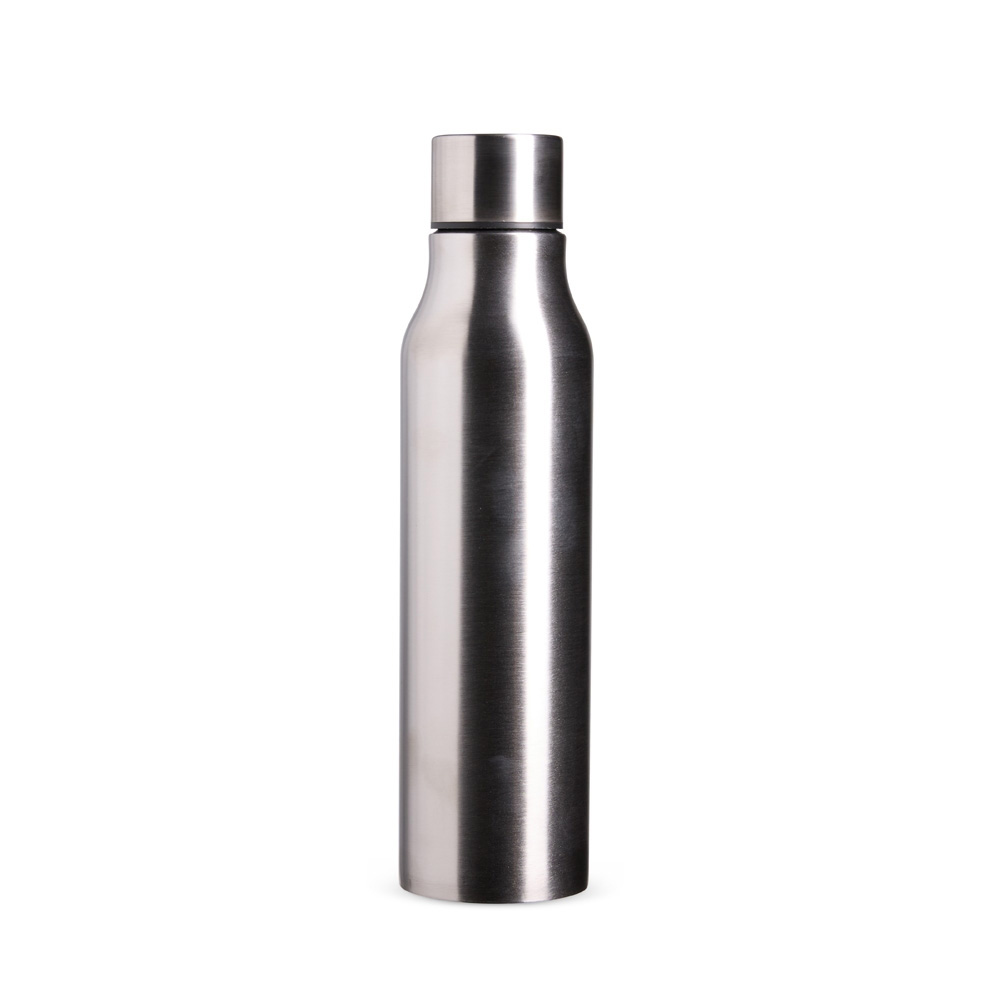Garrafa de 750ml em inox com tampa rosqueável e pintura fosca metalizada. Medidas: ø73x275 mm.