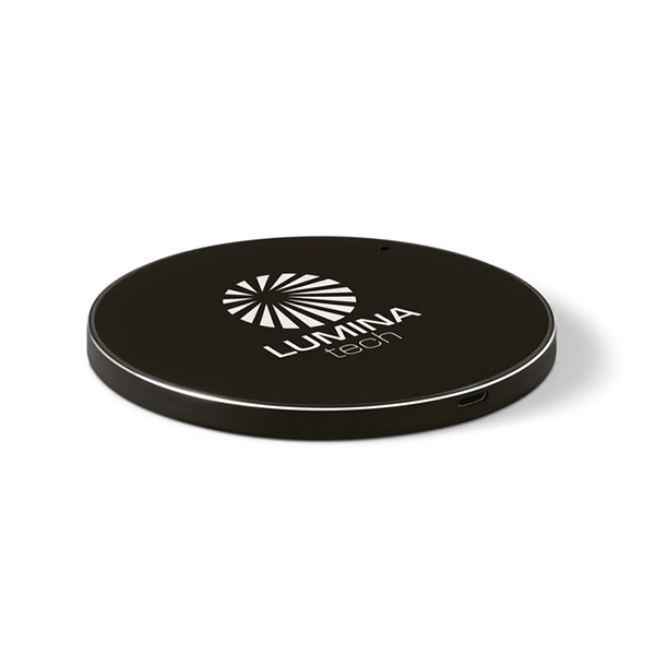 Carregador wireless super-rápido em ABS 100% reciclado e alumínio 100% reciclado. Com entrada USB-C e potência de carregamento máxima de 15W. Incluso cabo USB-C para carregar. Carregador: ø100x9 mm - Cabo: 1000mm.
