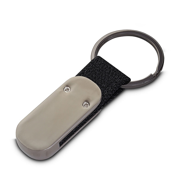 Chaveiro metálico de couro sintético especial e argola. Incluso caixa. Medidas: 22x65x8 mm.