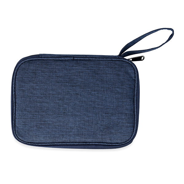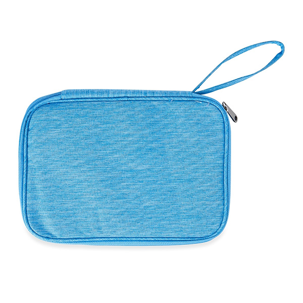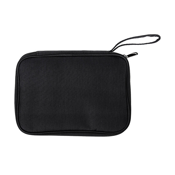 Estojo para kit tecnológico a prova dágua de poliéster possui 5 compartimentos com elástico e uma pequena tela de proteção, 3 elásticos centralizados, um bolso de tela com zíper e uma alça de mão. OBS.: ACESSÓRIOS NÃO INCLUSOS.