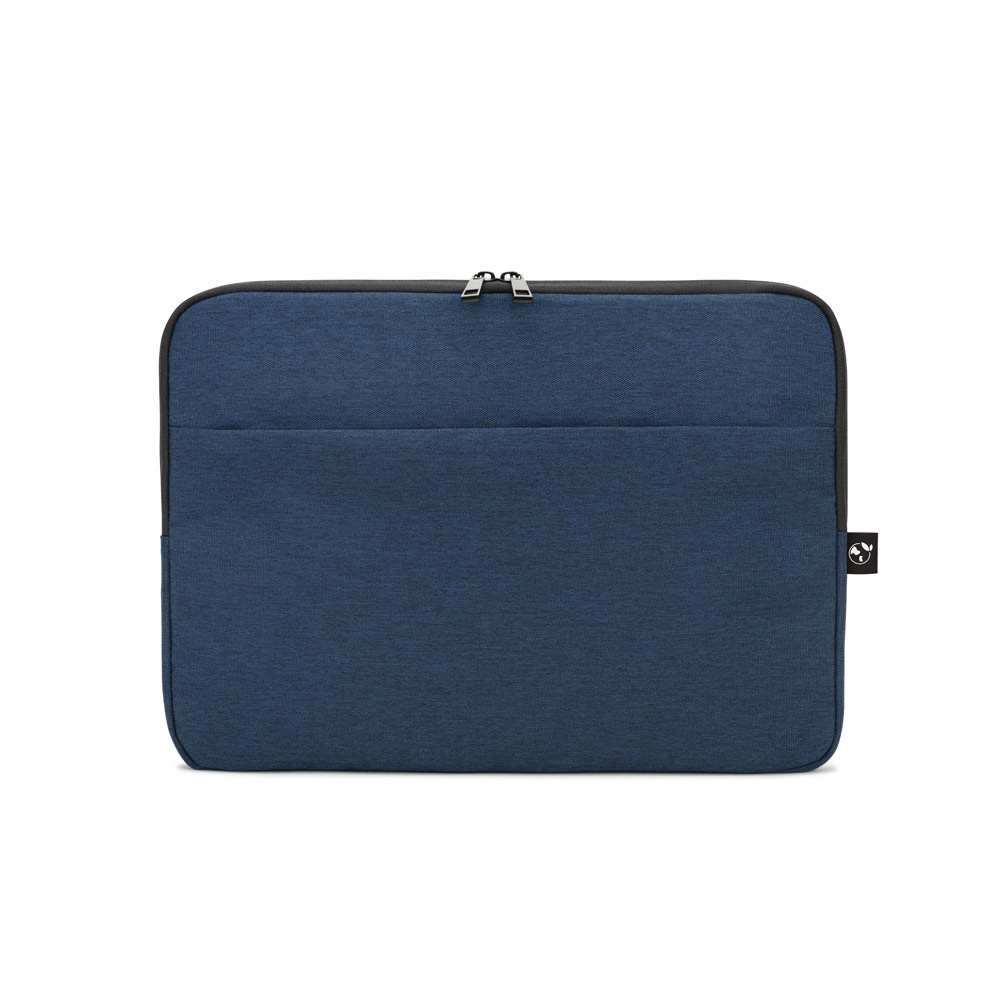 Pasta para notebook em poliéster reciclado 600D de alta densidade e forro em poliéster reciclado 210D. Possui um compartimento principal para notebook até 14 polegadas e um bolso frontal para guardar pequenos objetos.