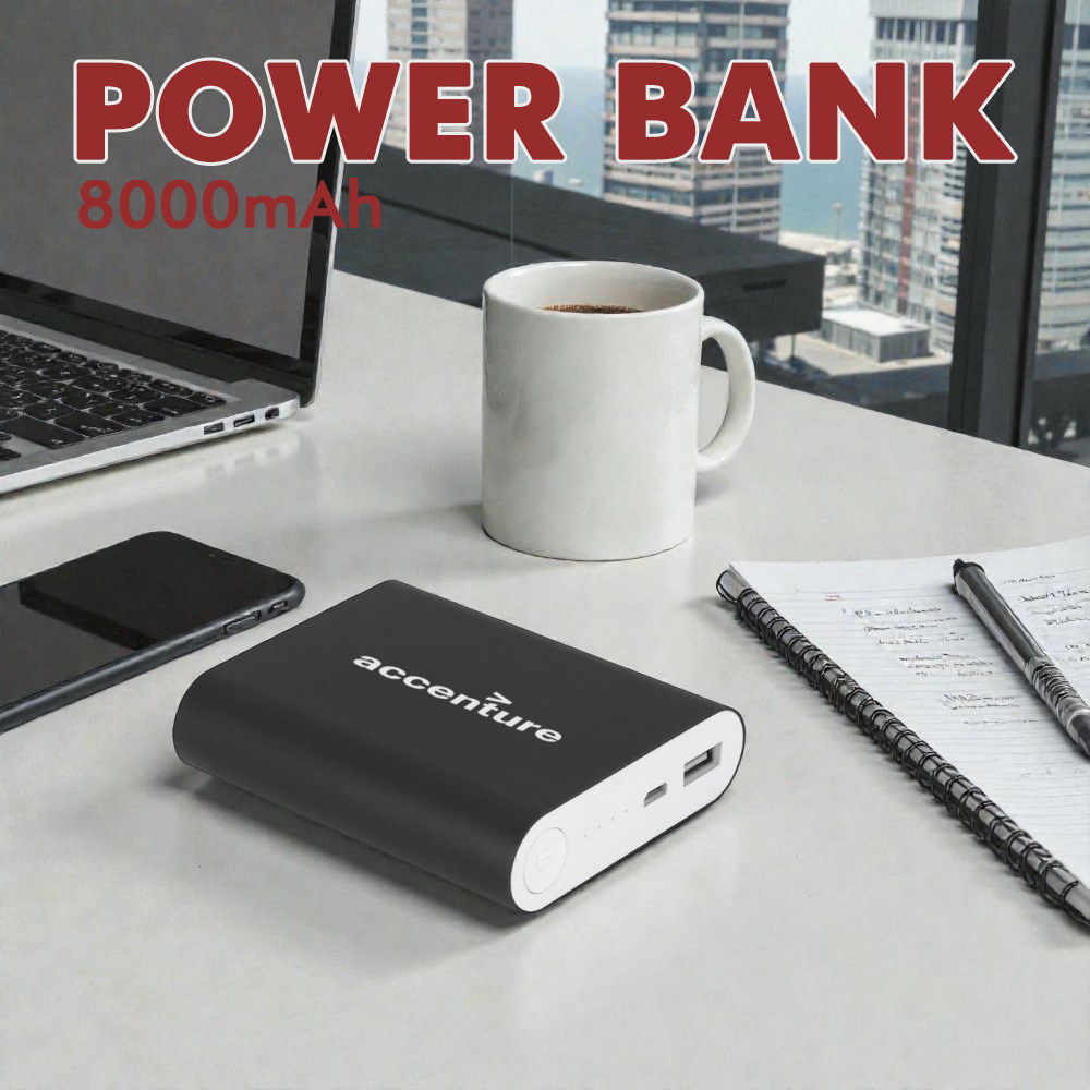 Power Bank carregamento indução de 8000mAh Power Bank de 8000mAh com carregamento por indução ou cabo. Indicadores de LED, detalhes emborrachado na área da indução.