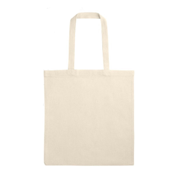 Sacola 100% algodão reciclado 140 g/m² com alças de 65 cm. Medidas: 380x420 mm.